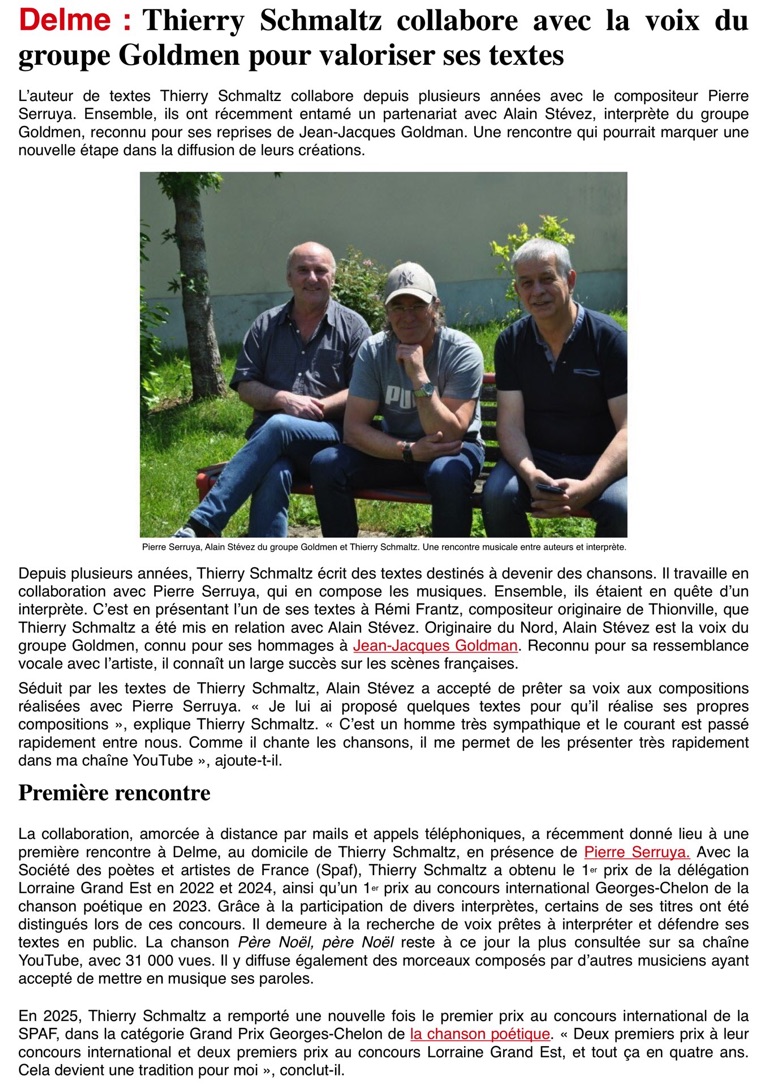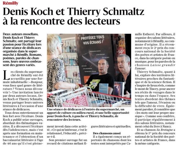 Ça me plait de savoir que Thierry Schmaltz poursuit encore et encore sa route, sa carrière d’auteur. Il sera d’ailleurs prochainement parrain d’un salon littéraire de Lixing-lès-Saint-Avold.